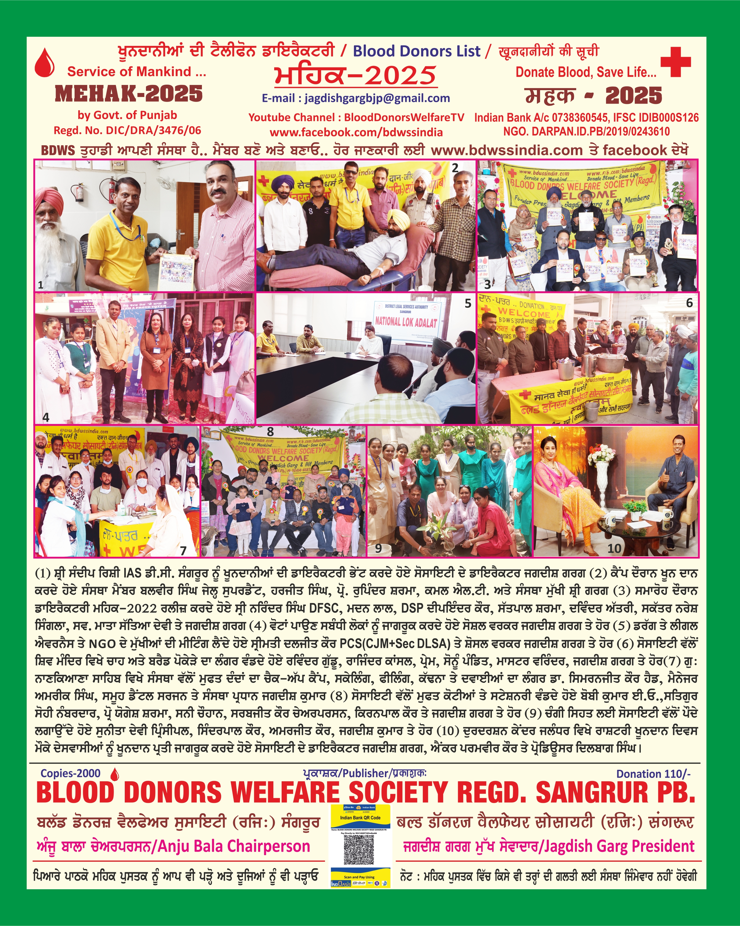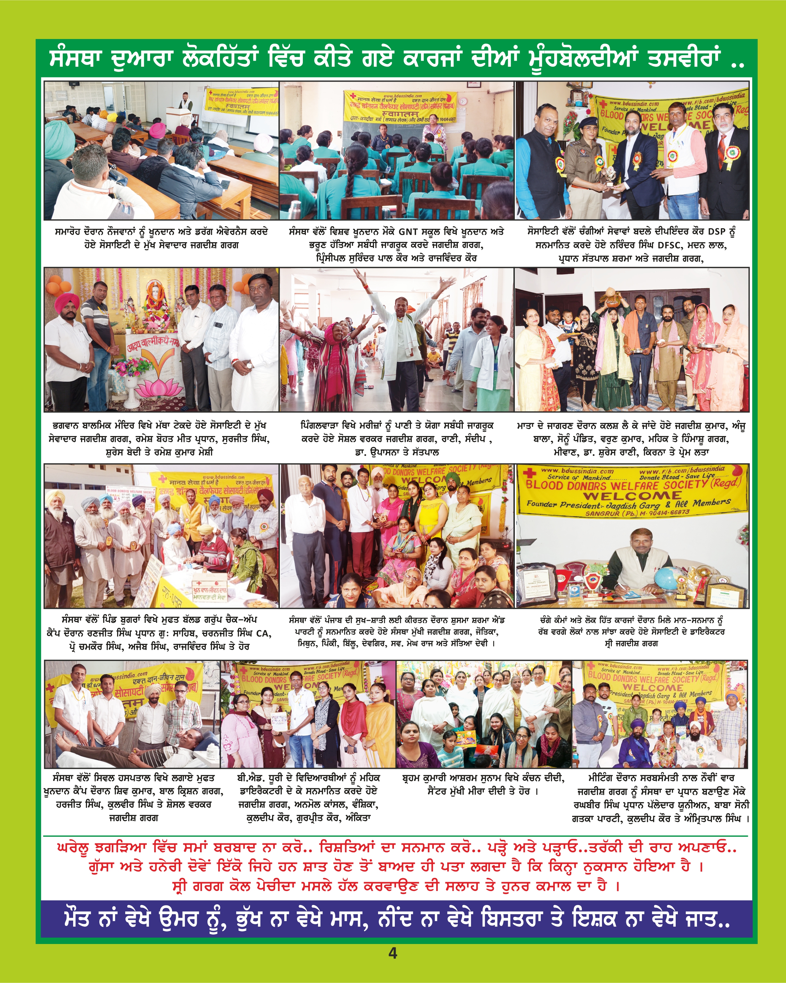 Blood Donors Welfare Society (Regd.) Sangrur (PB.) ! Donate Blood, Save Life.... To motivate people to donate blood, donate eyes and donate whole body... ਚਿੜੀ ਚੋਂਚ ਭਰ ਲੈ ਗਈ, ਨਦੀ ਨਾ ਘਟਿਓ ਨੀਰ, ਦਾਨ ਦੀਏ ਧਨ ਨਾ ਘਟੇ ਕਹਿ ਗਏ ਭਗਤ ਕਬੀਰ..... ਸੰਸਥਾ ਤੁਹਾਡੀ ਸੇਵਾ ਵਿਚ ਹਮੇਸ਼ਾ ਹਾਜਰ ਹੈ....., ਆਪਣਾ ਯੋਗਦਾਨ ਸੰਸਥਾ ਦੇ ਭਲਾਈ ਫੰਡ ਚ ਜਰੂਰ ਪਾਓ...... ਤਾਂ ਜੋ ਸੰਸਥਾ ਵਲੋਂ ਵਧੀਆ ਢੰਗ ਨਾਲ ਲੋਕ ਭਲਾਈ ਦੇ ਕੰਮ ਕੀਤੇ ਜਾਣ |